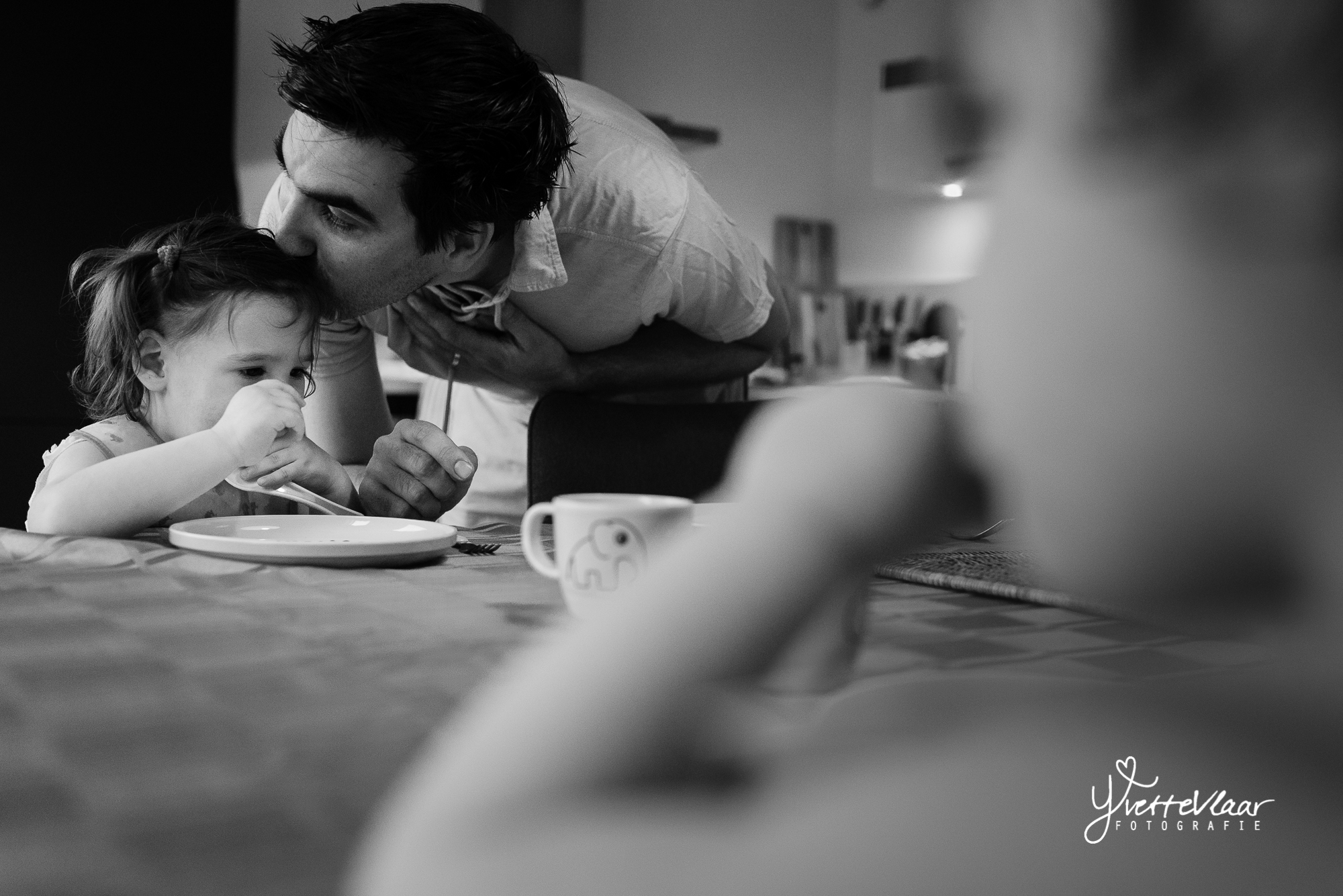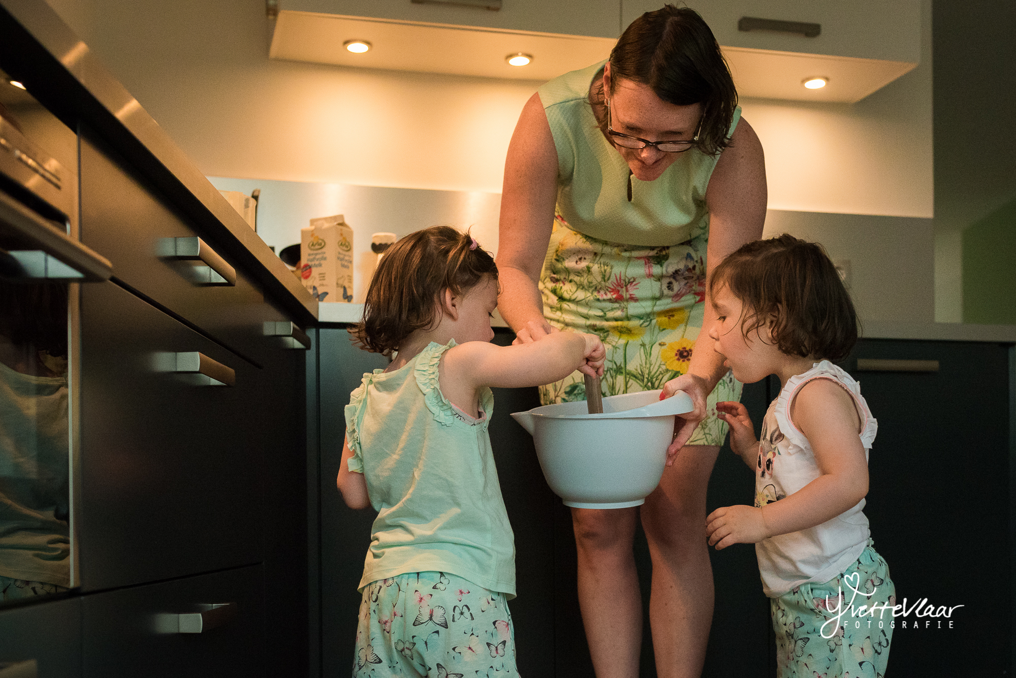 Twee is NEE, dus als ze iets anders in hun hoofd hebben dan jij eigenlijk wil, is het gewoon NEE. Maar het beslag kwam er prima uit. Ondertussen was ook papa thuisgekomen van zijn werk en kon iedereen aan tafel aanschuiven. Ik kon de twee dames niet uit elkaar houden en het was goed dat ze beide aan een andere kant van de tafel zaten.