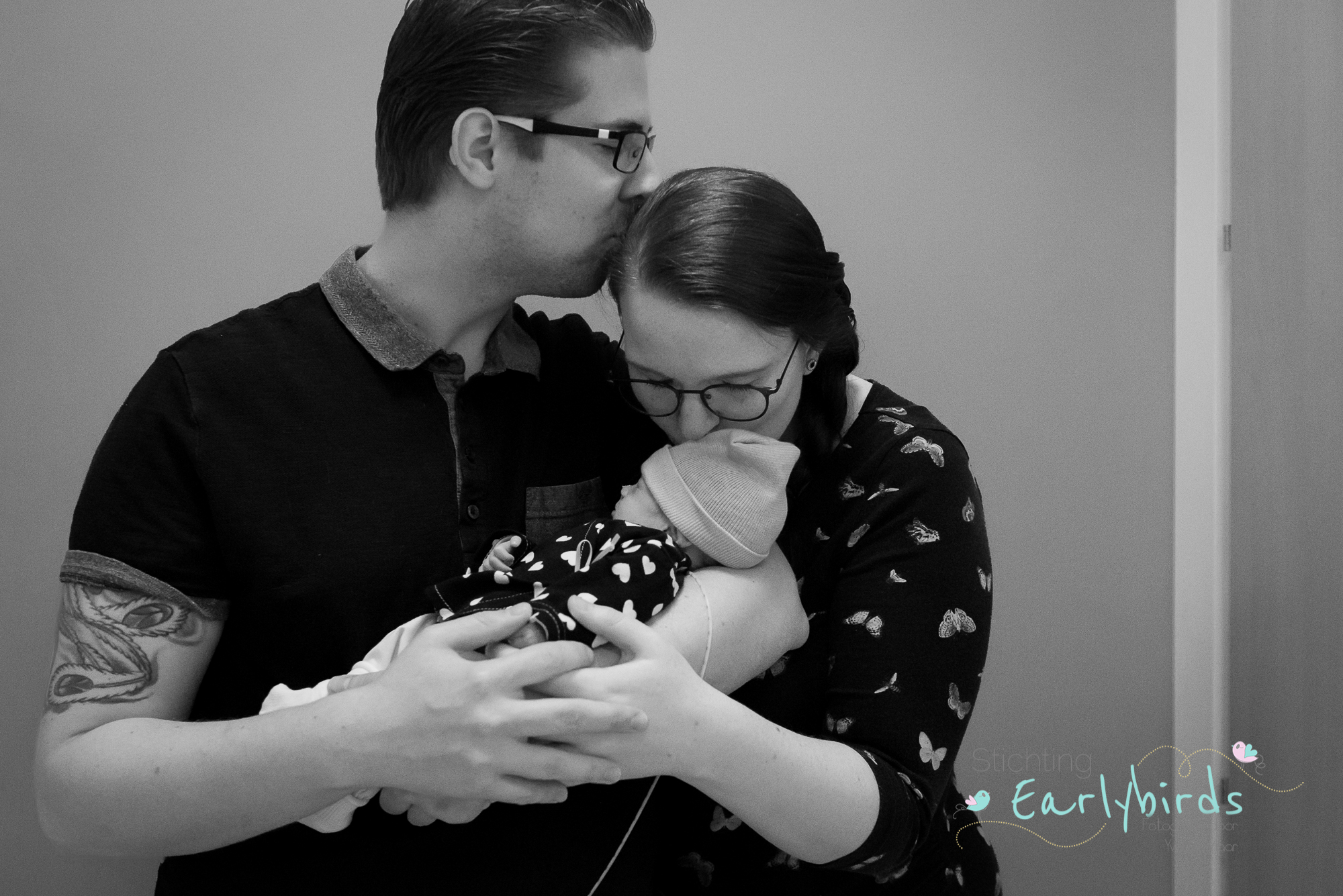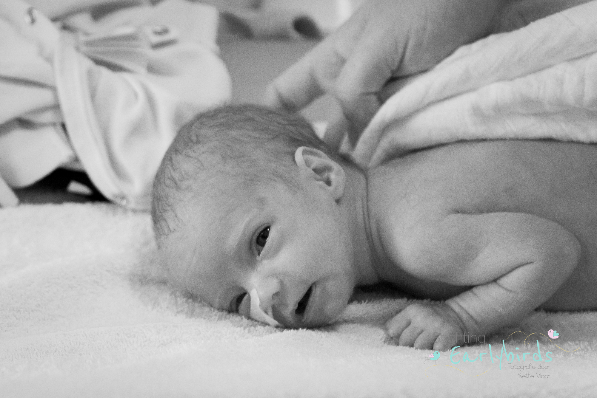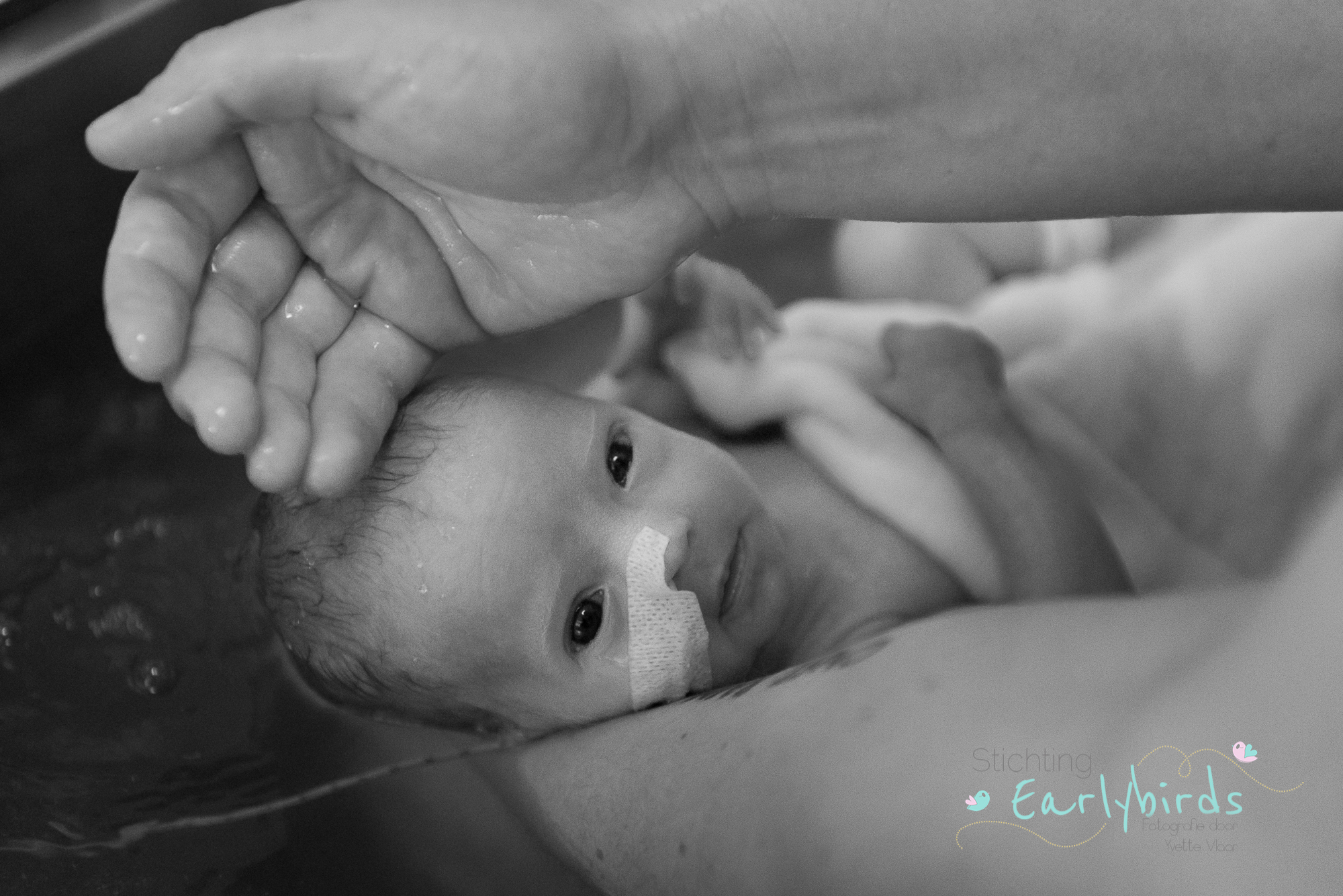 Elynn werd geboren met 32 weken en 5 dagen en gelukkig was ze van Amsterdam naar Hoorn verhuist. De papa en mama van Elynn waren er al helemaal klaar voor op het moment dat ik binnen kwam. Het badje werd klaargemaakt en de wegingen konden starten.